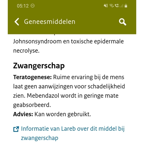 Ah wat vervelend! Ik heb in mijn 1e trimester mebendazol geslikt (gewoon bi ...