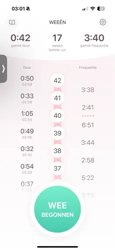 De app heet “Weeën Timer”. Vond hem zelf erg fijn in gebruik!
