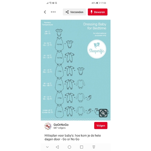 Zodra je merkt dat ze het te warm krijgen kan je alsnog minder warm aankleden of deken weg laten.