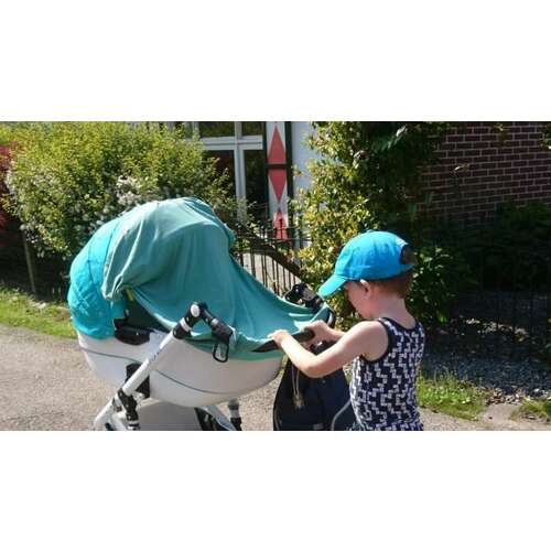 Woon in Australia en moet dus de baby goed tegen de zon beschermen, deze snooze shade werkt fantastisch. Past over de meeste kinderwagens (zit vast met klitteband lussen). Naast dat het de uv blokkeert is het van gaas gemaakt dus wind gaat er goed door en ademt heel goed. Daarnaast werkt het ook goed om tijdens dutje te gebruiken aangezien het de kinderwagen donker houdt. Het is een merk uit de UK dus zal ook wel in Nl leveren? https://www.snoozeshade.com/pages/shop-our-products