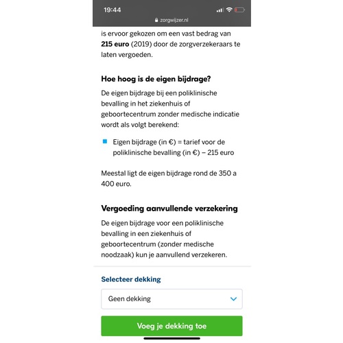 Betekent dit dus dat ik bij een niet-medische bevalling het verschil tussen wat er vergoed wordt (215,=) euro en de eigen bijdrage betalen? Dus pakweg 140 euro? Of begrijp ik het nu verkeerd?