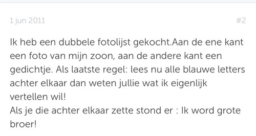 Rijg de letters in het blauw tot een lange zin nu gauw.