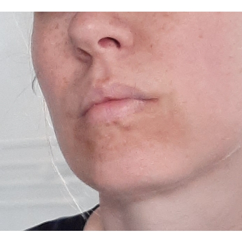 Ik heb exact hetzelfde! Op mijn kin en het loopt door naar mijn wangen, ben altijd wel zeer gevoelig geweest aan pigmentatie dus ik ga goed moeten oppassen!