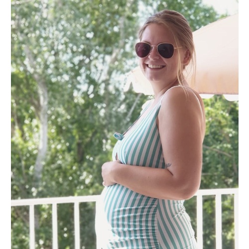 Ik had deze gekocht van de prenatal 馃槏 uiteindelijk nooit aangehad omdat het zwembad door corona nog steeds gesloten is en ik nu 38+5 ben dus verwacht niet dat ik hem nog aan ga kunnen doen voordat ons meisje geboren is 馃槄