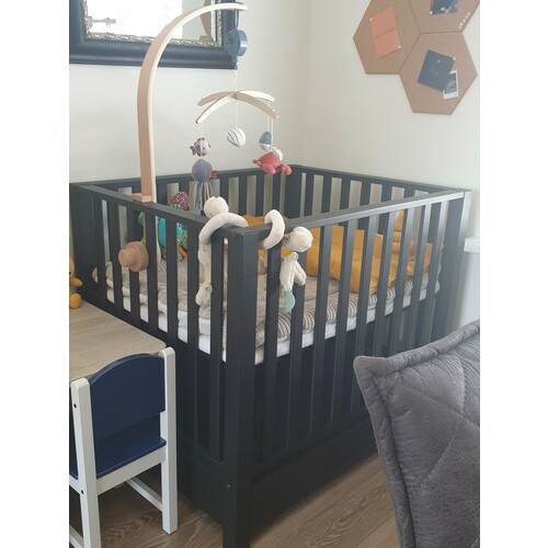 Wij hebben een zwarte box. Paste ook beter in ons interieur 😁 heel blij mee! Deze is van babypark met een lade eronder