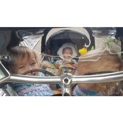 Ik wilde eerst een bakfiets halen.. maar kan mijn elektrische fiets niet missen.. fiets er zo graag op al 3 jaar.. heb mij een fietskar aangeschaft en een spiegel voor op mijn stuur dat ik haar kan zien.. en de oudste van 2,5 zit nog lekker achter op bij mij vind hij geweldig.. in de regen samen met zijn zusje in de kar.. Ik vind het makkelijk en het is een fietskar en buggy ineen.. wil.je wandelen even loskoppelen en je kan ermee weg.. ben er heel blij mee.. 😃😃