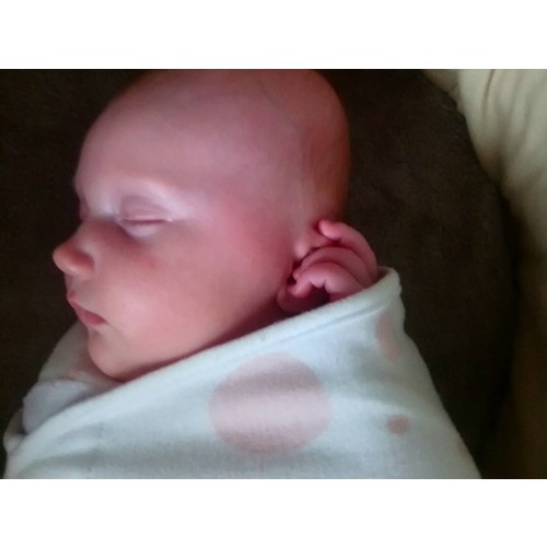 Vrijdag 10 weken oud, slaapt heerlijk, en trekt alleen dr linker hand er uit, ze blijft het doen.