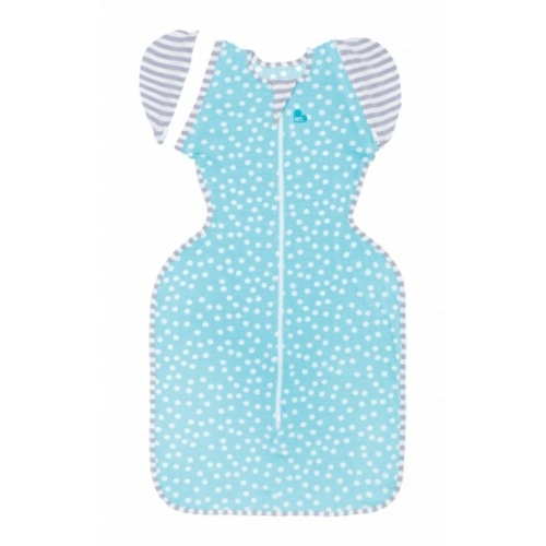 Ik heb een woombie. Hieruit kunnen ze zich niet bevrijden. Ze kunnen alleen met hun vingertjes door het hoofdgat heen waardoor onze oudste het voor elkaar kreeg haar speen te pakken. Voordeel is dat de grotere slaapzakken ook de optie hebben om de armen er uit te halen om te wennen of voor het moment dat ze gaan draaien.