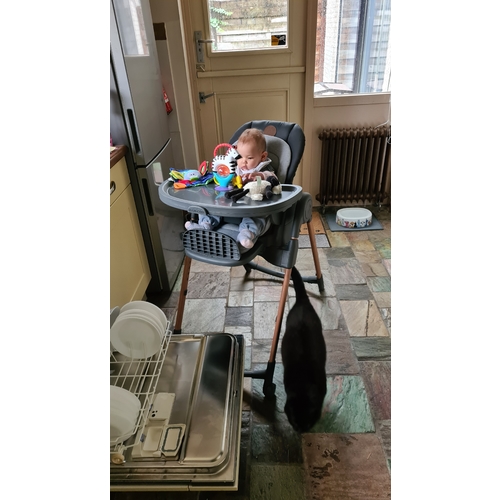 Mooie kwaliteit, hebben er een kussentje met veiligheidstuigje bij. Kun je ook een newbornset bij krijgen, maar die hebben wij echt niet gebruikt. Ze kan nog niet zelfstandig zitten, dus geef de hapjes nu nog zittend op schoot. Ook wel zo gezellig.