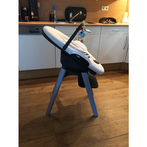 Onze kleine zit heel goed in de triptrap. Tot 6m in de newbornset, nu in de babysit. Hij kan nog niet zelfstandig zitten maar wel recht met ondersteuning. En dat gaat prima in de triptrap
