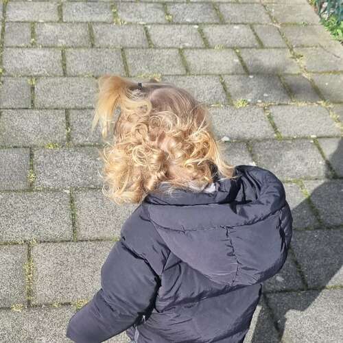 Ik maak haar borstel of kam steeds nat en dan kam ik het. Dan droogt het op met mooie krullen. Of ik kam het als ze in bad zit en dan kom ik er verder niet meer aan.