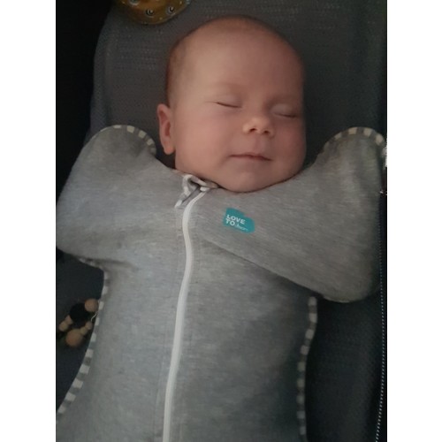 Ik heb zijn armpjes er ook nog in. Als ik dat niet doe, houdt hij zichzelf wakker, krabt zichzelf of slaat zijn speentje er steeds uit. Hij is nu 3,5 maand en ik laat het nog even zo. Misschien probeer ik over een tijdje een keer z’n armpjes vrij te laten. Maar voor nu heeft hij er veel baat bij en slaapt er heerlijk in!