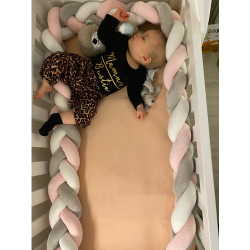 Die vlecht had bij ons geen zin. Meneertje tilt zijn bovenlijf op om dan nog boven te 'kruipen' of 'wiegen' en zodoende nog met zijn hoofd tegen het hoofdeinde of de spijlen te bonken. Ofwel gebruikt hij de vlecht om mee te worstelen en ligt ze dus niet meer tegen de randen 😂 Hier uiteindelijk (niet toen hij heel klein was!) toch een bedomrander in gebruik genomen en gaat veel beter nu. Hij stoot zich nog wel maar geen pijn meer 👍🏻