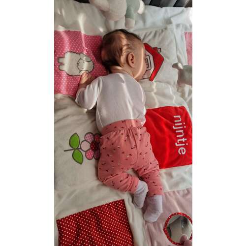 Onze kleine meid is alweer 17 weken oud. Ik lees veel berichtjes van kinderen die al rollen. Onze kleine meid wil het heel graag maar het lukt haar niet om over haar schouder heen te rollen. Speeltje buiten bereik leggen werkt niet hahha. Ze is te snel afgeleid en gaat dan gewoon wat anders doen hahaha
