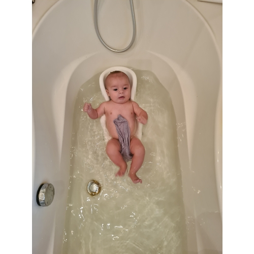 Wij gebruiken het opblaasbare badje van bambino nu te koop bij het kruidvat. Hier kan onze dochter lekker in spartelen zonder dat zij haarzelf pijn doet.