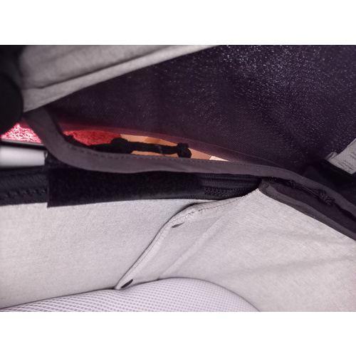 Met dat klittenband trek je in de zomer de kap aan de onderkant los en heb je ventilatie