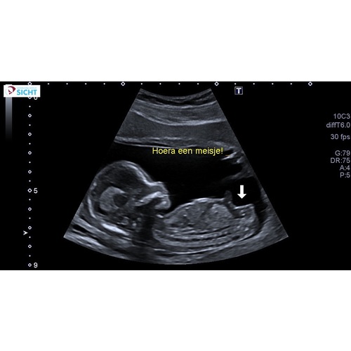 Bij mij ging ze ook meteen voor het zij aanzicht. De echoscopiste zei meteen dan kan ik het het beste meteen zien. Is een meisje. Mijnes is wel gedaan vandaag op 16+2 Dus is zeker geen nub meer. Ze zei dat dat witte staafje een schaambeen/bot is en dat bij jongetjes daarboven heel duidelijk een piemeltje met balletjes had gezeten. Daarna nog wat shots van onder gezien en ook daar was echt 0,0 te zien aan een uitsteeksel 🤣 maar zij pakte dus ook niet een pottyshot om het te zien...