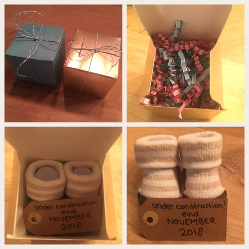 Ik wil het met deze rompertjes gaan doen. Inpakken met een kaartje erbij waar ik een echo foto in wil doen. 😊. Eerst even m'n echo afwachten uiteraard