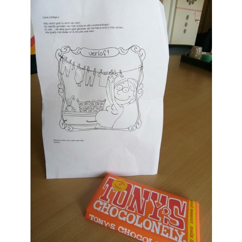 Ik heb een zak met mini Marsen en snickers zo'n mix zak neergelegd op onze slaapwacht en bij andere collega's een reep chocolade met een briefje er bij