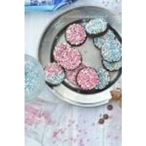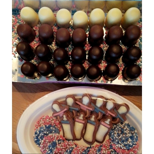 Ik heb blauwe paaseieren gehaald en ik ga witte chocolade fudge maken met blauwe muisjes. Ook dip ik mini stroopwafels in witte chocolade en ook daarover gaan blauwe muisjes.