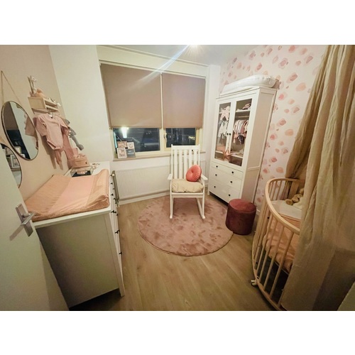 Ik heb hem ook! Daarbij de sundvik ledikant van ikea bij besteld 😊 is redelijk van hetzeflde materiaal & ook wit. Een zwart ledikantje zou ook erg stoer zijn voor als je een jongetje krijgt !