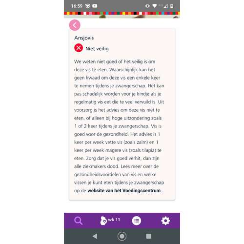 Dit staat in de ZwangerHap app. Zou die zeker even downloaden, altijd fijn ...