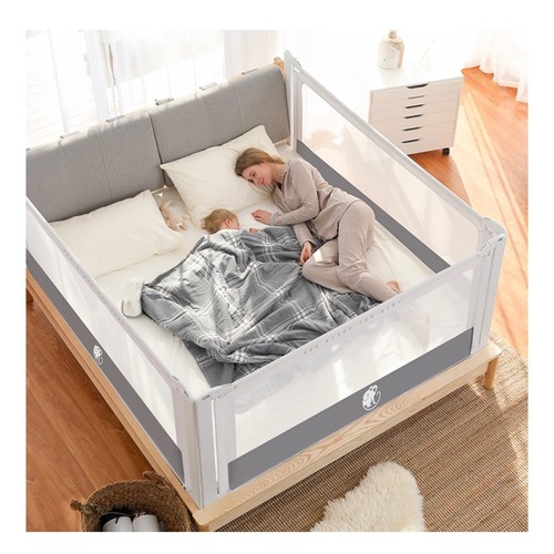 Ik gebruik deze sinds we afgelopen weekend op ledikantje zijn overgestapt: https://www.smythstoys.com/de/de-de/baby/babys-sicherheit/bettgitter-und-kindersicherung/safety-1st-tragbares-bettgitter-106-cm/p/8006915