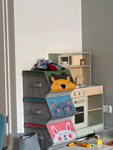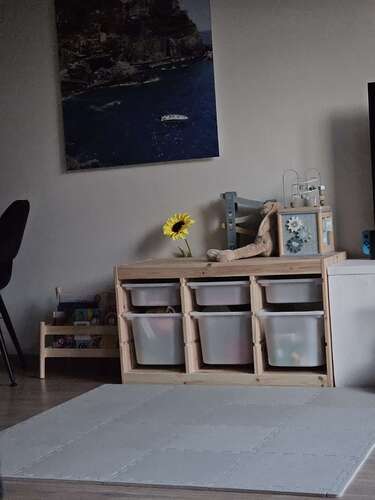 Wij hebben 2 lockerkastje (40x40) met daartussen een ruimte van zo鈥檔 60-80cm en daar op een plank gemaakt zodat ze er later ook aan kan spelen/knutselen ed. Daar tegen aan staat een grote metalen kast van ons en onderin zitten 2 deuren met 4 legplanken, daar hebben we puzzels, spelletjes van ons en komt ander speelgoed van haar. Zo kan ze zelf kijken waar ze mee speelt en past het ook nog bij ons interieur 馃槀馃檲