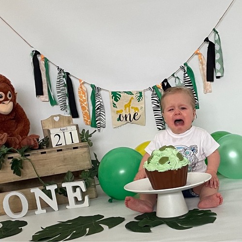 Wij hadden de cakesmash vandaag. Ze was een beetje de kat uit de boom aan het kijken maar wel aan het ontdekken maar ze ging niet huilen en was meer heel geïnteresseerd en was echt in haar eigen bubbel. Gelukkig ook wel wat foto’s dat ze moest lachen. Te schattig!
