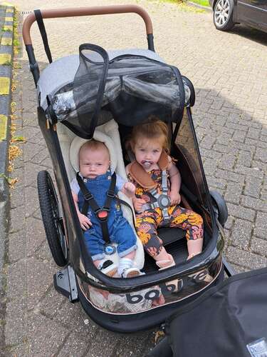 Wij hebben de fietskar van bobike. Daar kan mijn zoontje van 4 maanden en mijn dochter van 2 in. Deze kan ook gebruikt worden als kinderwagen. Mega handig! Wij hebben de melia babyschaal erin bevestigd. Daar ligt hij lekker in :) beste aankoop ooit! Handig in de dierentuin maar ook gewoon voor naar de supermarkt.
