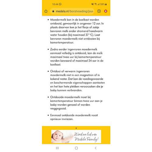 Ik moet bekennen dat ik nu maar 1x van mijn bevroren voorraad wat heb gebruikt dat in de Medela bewaarzakjes zat. Voorheen deed ik gelijk na het kolven de Medela opvangflesjes in de koelkast of vriezer. Maar nog over dat bewaarzakje...die had ik gewoon in de flessenwarmer gegooid. Het zat niet volledig ondergedompeld. En daarna overgeschonken naar een flesje. Ik zou niet weten hoe ik anders de inhoud in een flesje krijg🤷♀️.