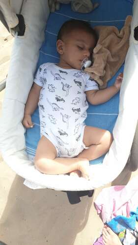 Onze meid van 15 weken zit al 2 weken in de buggy zit van de kinderwagen. N ...
