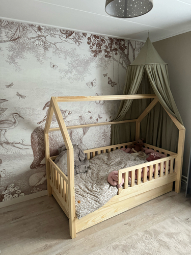 Toen na een lange zoektocht overgegaan op dit bed van de jysk 140x200 waar we de poten van weg hebben gelaten; een laag voordelig bed met zachte randen waarvan minimaal 2 hoge kanten en 1 zijde staat tegen de muur aan. We hebben ruime kamers en ook geen zin om elke x een nieuw bed aan te moeten schaffen, en handig bij ziekte, slaapregressie en logees! Hij kruipt er savonds ook zelf in en sochtends zelf uit, drentelt ie een beetje over de overloop en keutelt ie in zijn en onze slaapkamer totdat we ook mee opstaan; zorgen dat boven alles veilig is en wij vinden het echt heerlijk rustig werkend! 0 gejank meer boven gehad 😁