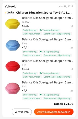 Ja ik heb stepping stones. Heb ze van alie expres. Heb er 8 en dat kostte maar 40 euro. Mijn dochter is bijna 2 en ze vind ze erg leuk. Ze gebruikt ze om te stapelen, om op te zitten, als hoedje, om haar knuffels in de stoppen. Sinds kort zijn we haar ook aan het leren er overheen te lopen. Dit vind ze helemaal geweldig maar ze heeft de balans nog niet. Dus wel een handje vast. Maar deze zijn echt van prima kwaliteit. Ik kan er zelf ook overheen lopen met mijn flinke zwangerschaps gewicht.....lol