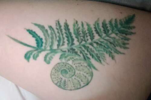 Ik heb een varen en een varenknop. De varen ben ik, de varenknop staat voor mijn dochtertje, die nog moet groeien en zich moet ontplooien, die ga ik binnenkort nog een keer bij laten werken, want ik wil de knop iets donkerder. Maar het idee vind ik nog steeds heel mooi🥰