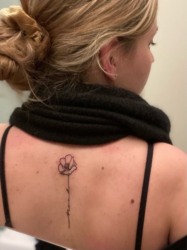 Ik wilde eerst zijn geboortebloem. Maar ik wil een tattoo waar mijn ouders trouwbloem, onze trouwbloem en de geboortebloemen van alle kids in zitten. We willen nog 1 of 2 kinderen dus met deze wacht ik nog even, dat het echt een boeket kan worden!