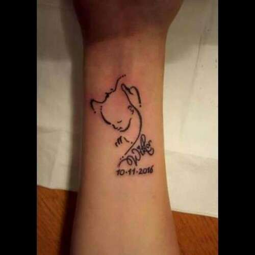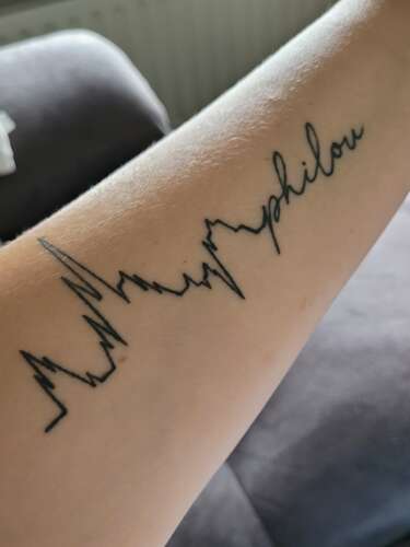 We hadden een konijntje op het geboortekaartje, die ga ik wel als tattoo zetten. En daaronder het ritme zijn hartslag van toen ie nog in mn buik zat🤗