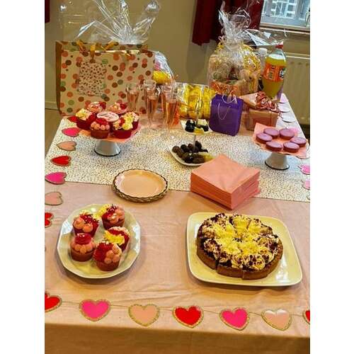 Ik heb brownies met glazuur gebakken en daar muisjes overheen gestrooid en cheesecake cupcakes met frambozen en roze muisjes erover. Beide recepten van oh my foodness. De brownies zijn in het recept zonder muisjes, maar kwam ik weer ergens anders als voorbeeld tegen. Vandaag afscheid, dus hoop dat alles lekker is!