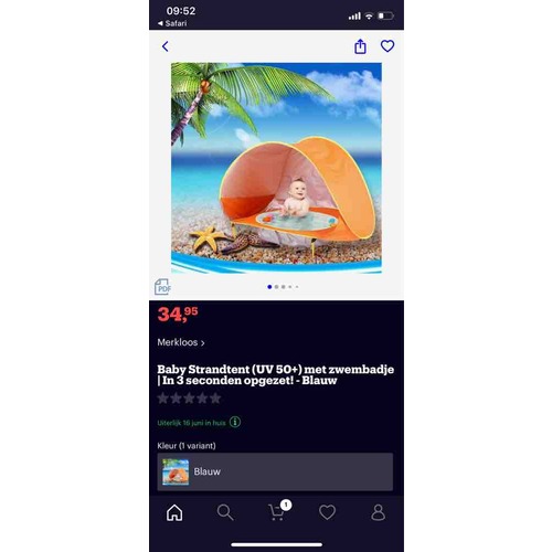Ze verkopen een tentje in vorm van een soort koker zeg maar. Dit ventileert door het gaas en is bedekt met UVW werend doek. Ook kunnen ze er lekker in liggen en je maakt hem dicht met een rits. Wij hebben er 1 van prenatal en van het merk deryan.