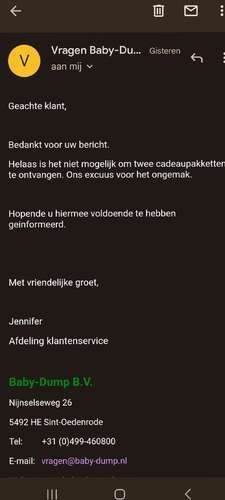Ik heb baby dump gemaild omdat je daar ook een gratis baby cadeaubox krijgt.