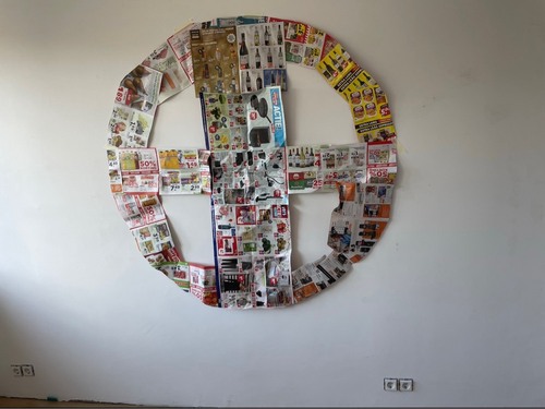 Ik twijfel nog steeds tussen de cirkel en het volledige behang. Ik heb met kranten een cirkel van 142,5 gemaakt en zo gekeken hoe dat staat 😂