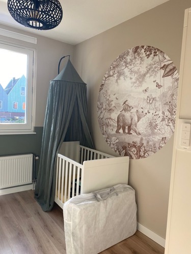 Dankje! Lastig dit.. onze wand is 3,40m en twijfel dus erg tussen deze maat en de 190… de wand is 1 kleur, en de wand aan de overkant heeft een lambrisering. Verder staat alleen het bedje ertegenaan en de kast staat tegen de aangrenzende muur. Ik denk dat ik maar ga aftekenen op de muur ofzo 😅