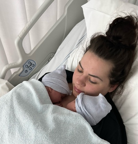 Om 8:10 in het ziekenhuis 9 cm ontsluiting en om 10:34 is Milo geboren, in stuitligging met alleen een knip.