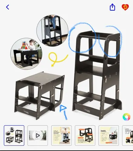 Wij hebben de Bouchelle leertoren en zijn er ontzettend blij mee. Hij werkt heel fijn en de hoogte is ook super. Heb wel een klein dingetje gevonden waar ik op had moeten letten voordat ik hem kocht, maar dit ligt ook voornamelijk aan hoe je kind is. Mijn zoontje klimt overal op en als de leertoren in tafelstand staat dan klimt hij op de tafel, maar door het ronde gedeelte (waar ik een pijl en cirkel heb gezet op foto) kiepert hij makkelijk om wat niet zo handig is natuurlijk😂