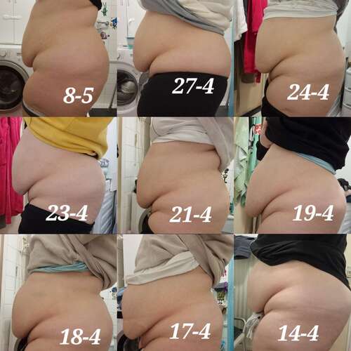 Mijn buik is nu een hangbuik(je) die wel steeds minder word met de weken maar de weegschaal staat gewoon stil.