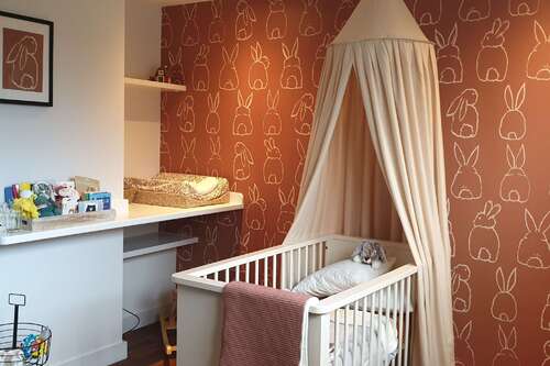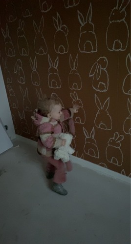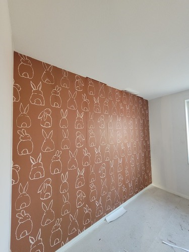 Dat behang zit voor ons lieve meisje op haar nieuwe kamertje op de muur! Ze is helemaal wild van de konijntjes 馃槏