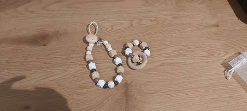 Ik heb zoiets besteld met onze 2e dochter, een speenkoord en rammelaar met naam. Speenkoord was dus een keer open gegaan (knoopjes los) en maar goed dat ik het dus zag voordat ze de kraaltjes te pakken had. Terug gebracht en de mevrouw heeft het weer gemaakt. Is dus een 2e keer gebroken, zelf "gerepareerd" zeg aan elkaar geknoopt en in de kast gelegd. Voor mij nooit meer, veel te gevaarlijk.