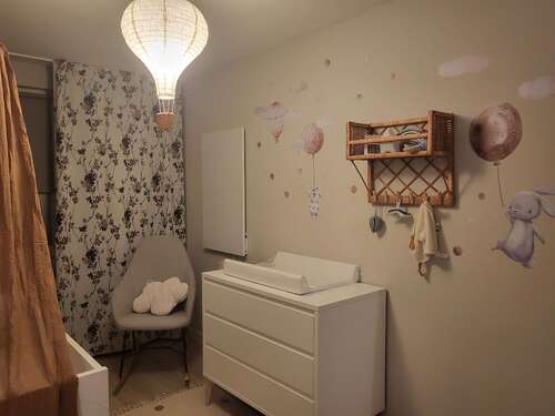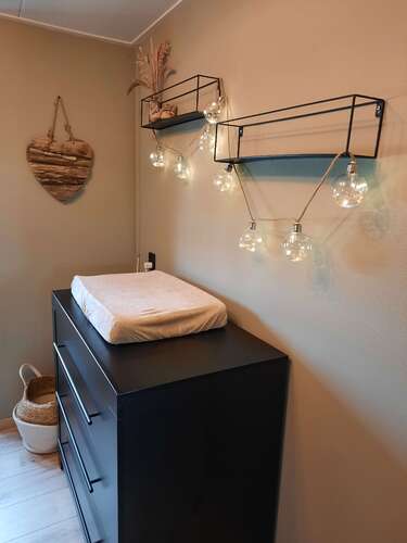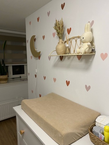 Het is wel handiger om dit niet boven het aankleedkussen te hangen, daar al ...