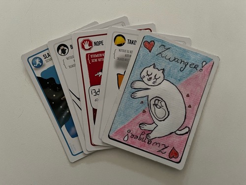 Wij hebben voor onze familie een eigen versie van een speelkaart (exploding kittens) gemaakt. Je zou dan een versie kunnen maken van een ander spel of misschien heb je bepaalde (dag)kaarten in de klas hangen (ik ben daar niet zo in thuis).