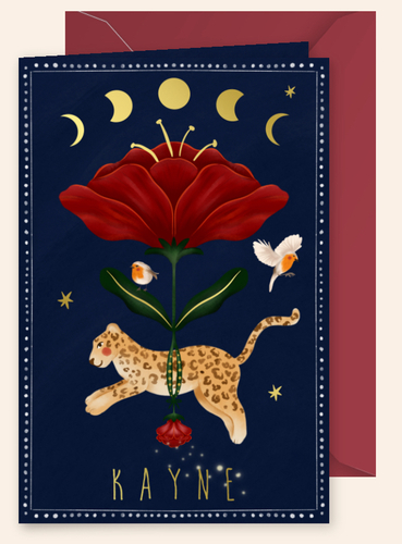 Dit wordt ons kaartje! Zelf ontworpen en helemaal mijn stijl. Mijn vriend riep in eerste instantie geen panterprint! Maar hij vindt hem toch wel mooi, hihi.